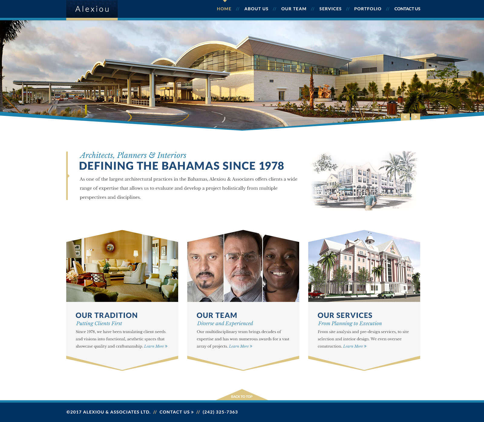 Alexiou & Associates has been defining the Bahamas since 1978. With commercial projects spanning several industries and residential properties in a variety of styles, organizing the information featured on the website was of utmost importance.